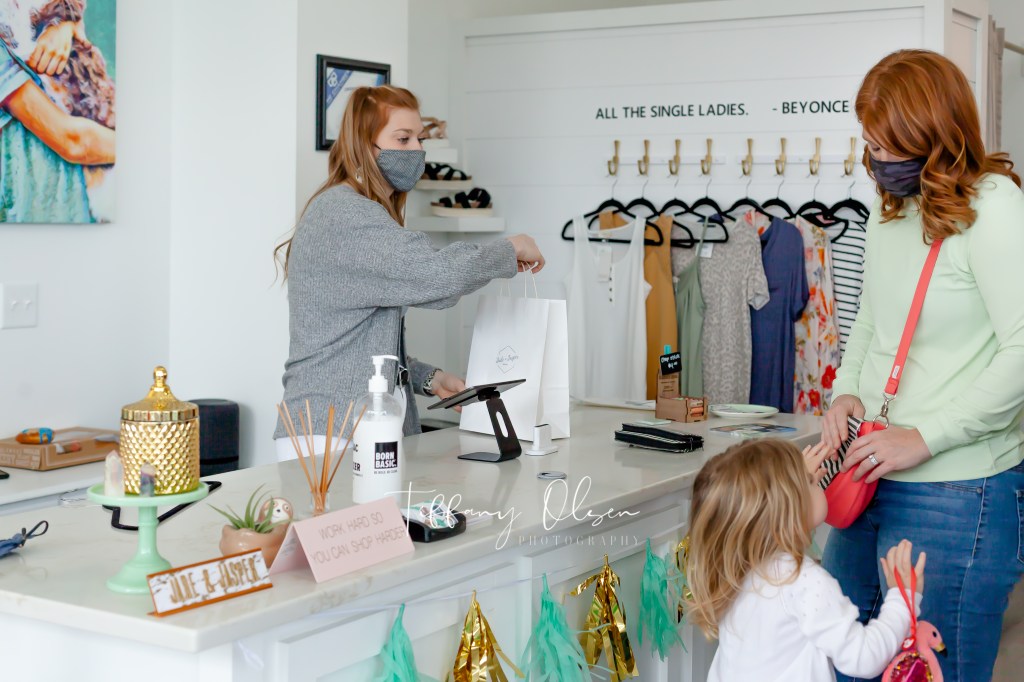 On Saturday, May 8, Jade + Jasper women’s boutique owner, Ashley Nowacki, hosted an All About Mom event with Becky Korf, owner of Bittersweet Arrangers, and me. Alphalit Fargo was there with the cutest MOM marquee letters set up outside the shop, and neighboring businesses, Moxie Java and The Lights Nutrition also offered specials for customers of the event.