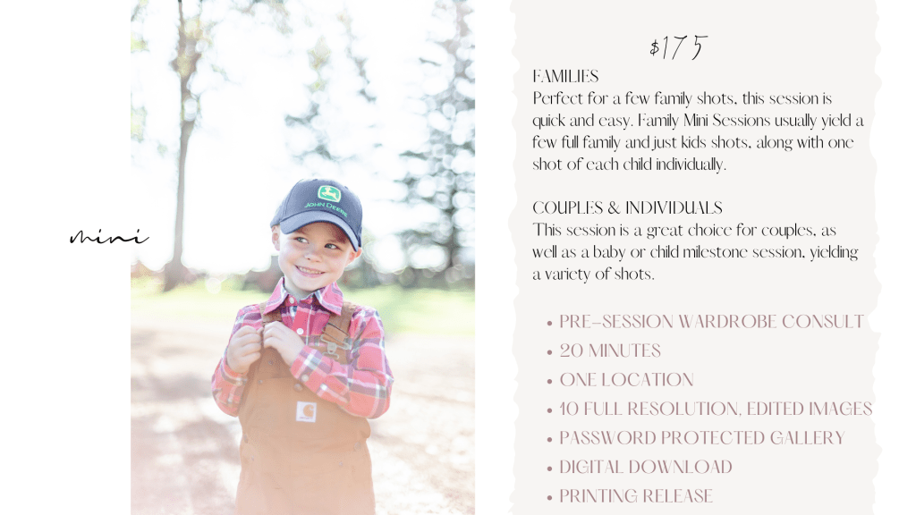 I have officially launched my NEW SESSIONS and I’m so excited about better serving my amazing clients with these new offerings that include some great new products and add-ons.